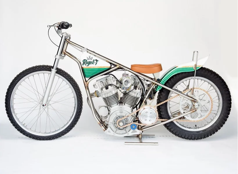 Le Meirson Sprint Motor était un prototype de V-twin développé spécifiquement pour remplacer le Vincent V-twin qu’ils utilisaient dans leur sidecar speedway bike. Pour accélérer le processus de développement, ils ont utilisé une embase Harley-Davidson Flathead, puis développé leurs propres cylindres, têtes, pistons et bielles.